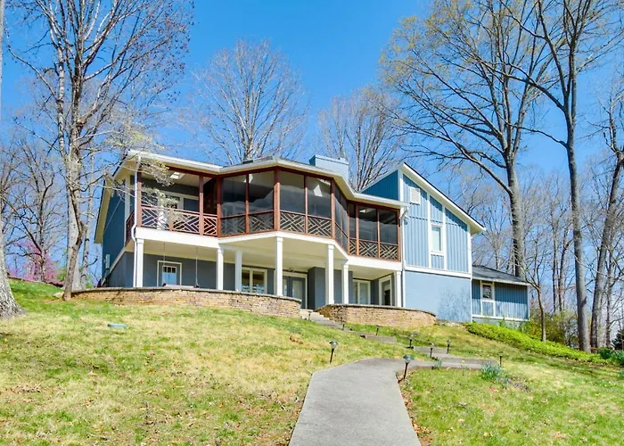 Smith Mountain Lake Getaway With Private Dock! is located within 10 minutes' drive of Bridgewater Plaza and invites guests to enjoy a sunny patio.